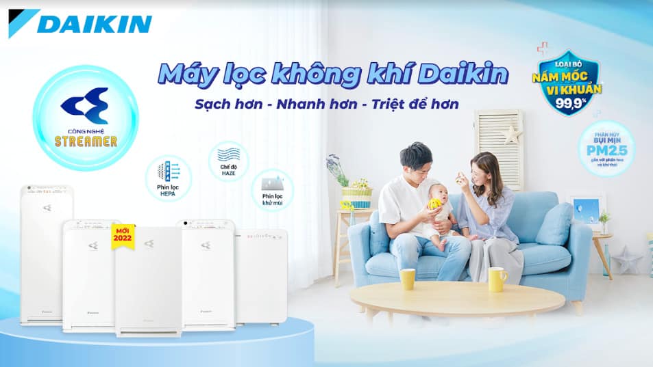 - Phân hủy: Công nghệ độc quyền Streamer có khả năng phân hủy lên đến 99,9% virus, vi khuẩn, các loại nấm mốc, chất gây dị ứng bám trên phin lọc. Hoạt động dựa trên cơ chế phóng điện plasma, Streamer tạo ra những dòng electron tốc độ cao, kết hợp với các thành phần trong không khí để tạo thành các phân tử oxy hóa có tốc độ phân hủy hơn gấp 1000 lần so với phóng điện thông thường, tương đương với sức mạnh phân hủy của một nhiệt lượng ở khoảng 100,000°C.